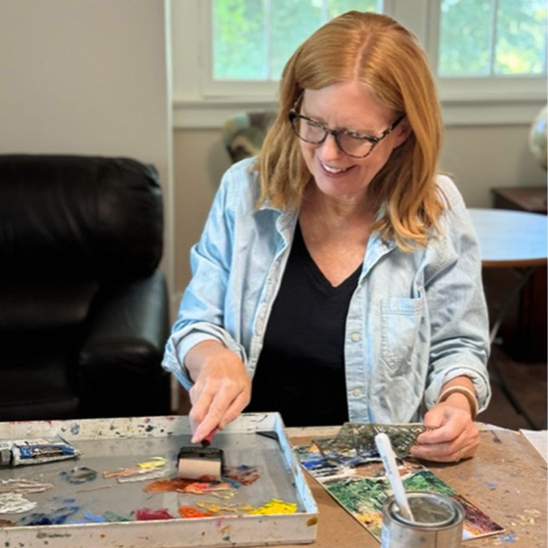 Generally, Theresa has always been intrigued by Impressionism works found in museums throughout the world. More specifically, the scope and style of work done by Gerhard Richter, a German abstractionist, has become a major inspiration. More immediately, artwork by fellow contemporary artist and friend, Debra Hintz, has influenced Theresa’s work with her defined layered palette knife technique.