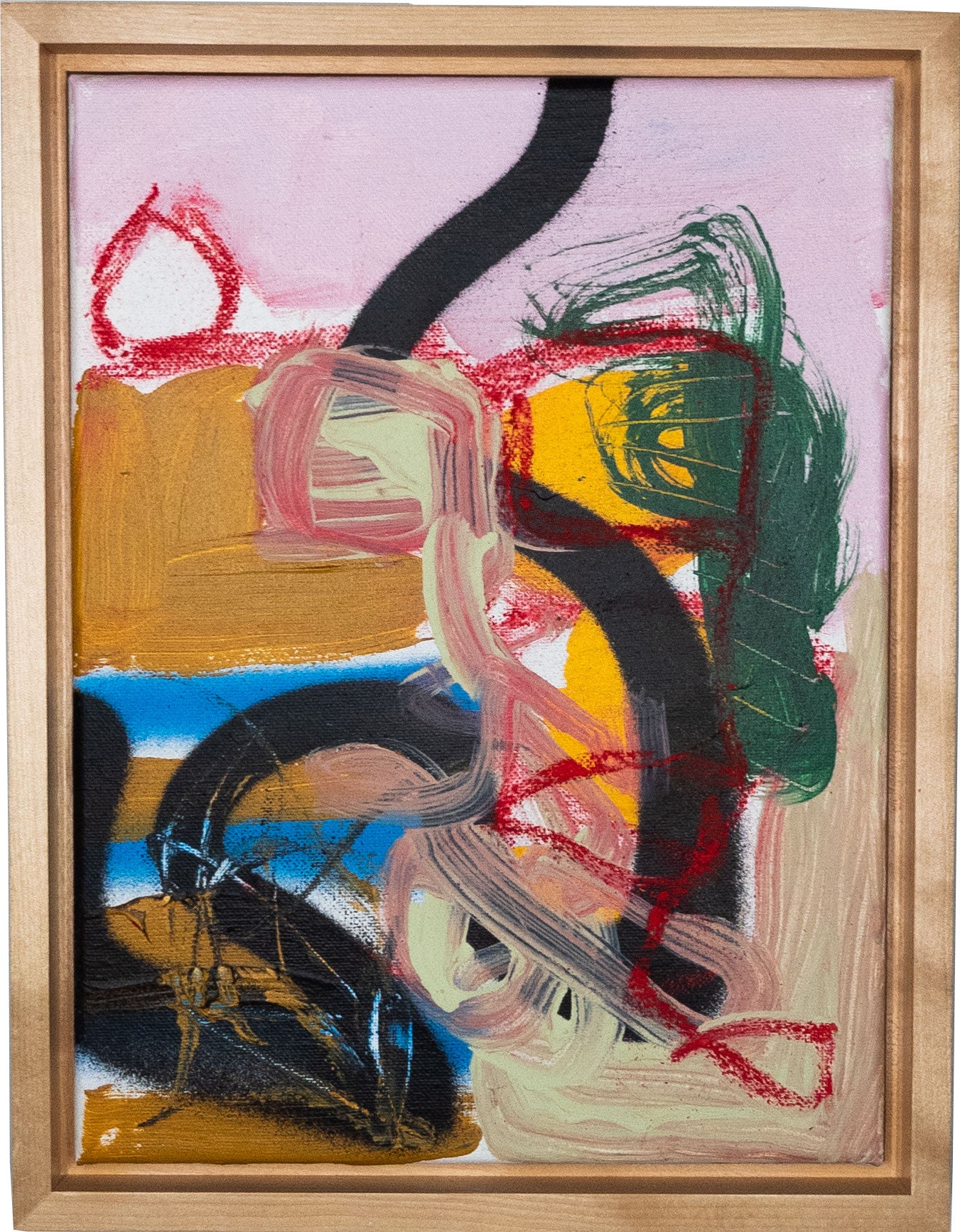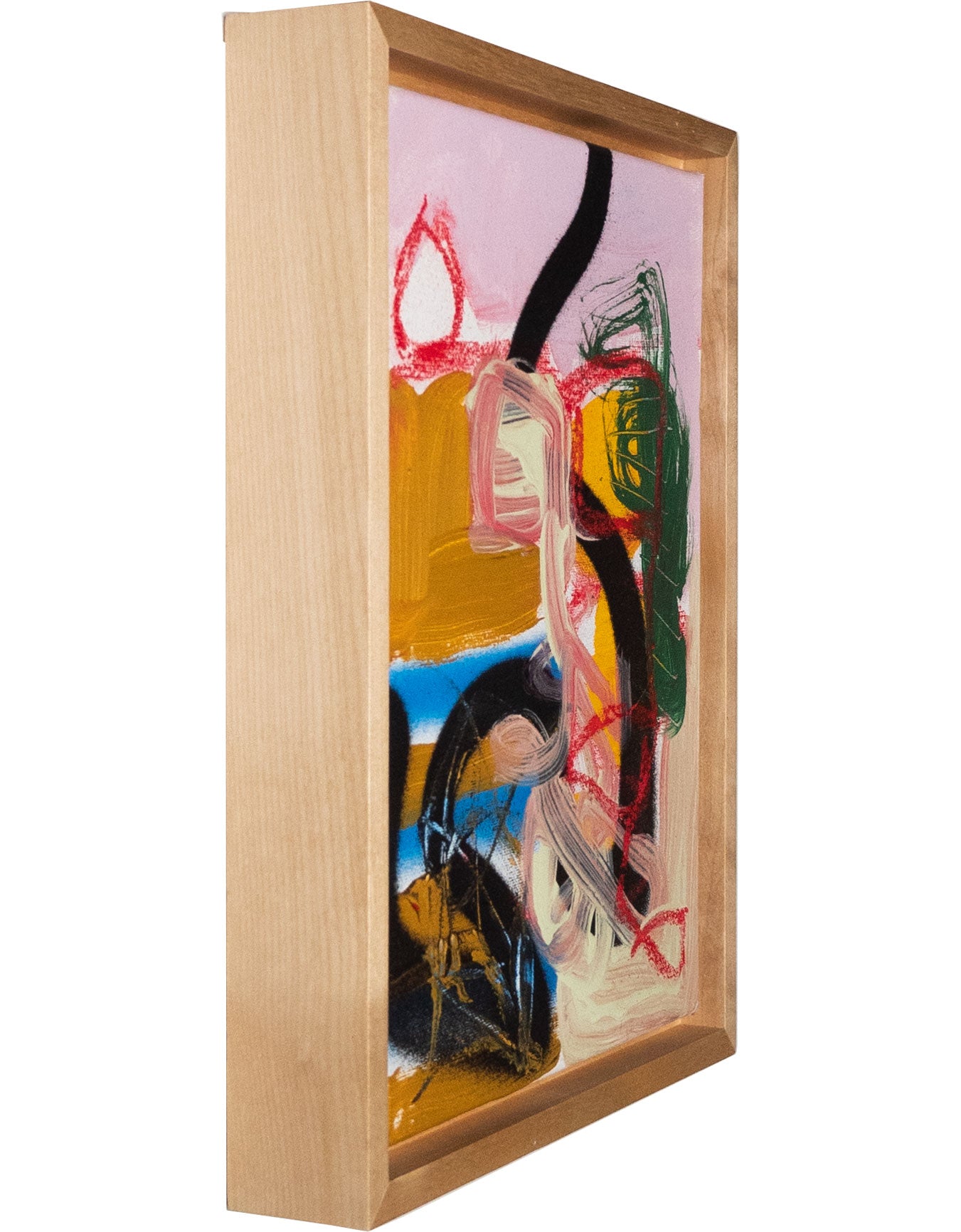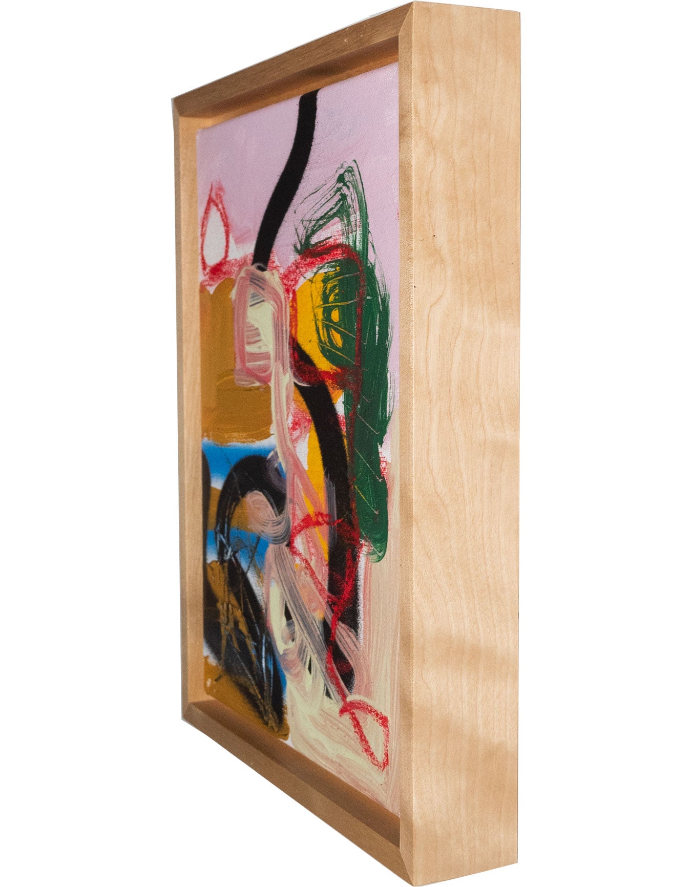 Soft pastel, spray paint and acrylic on canvas. Framed in maple hardwood.