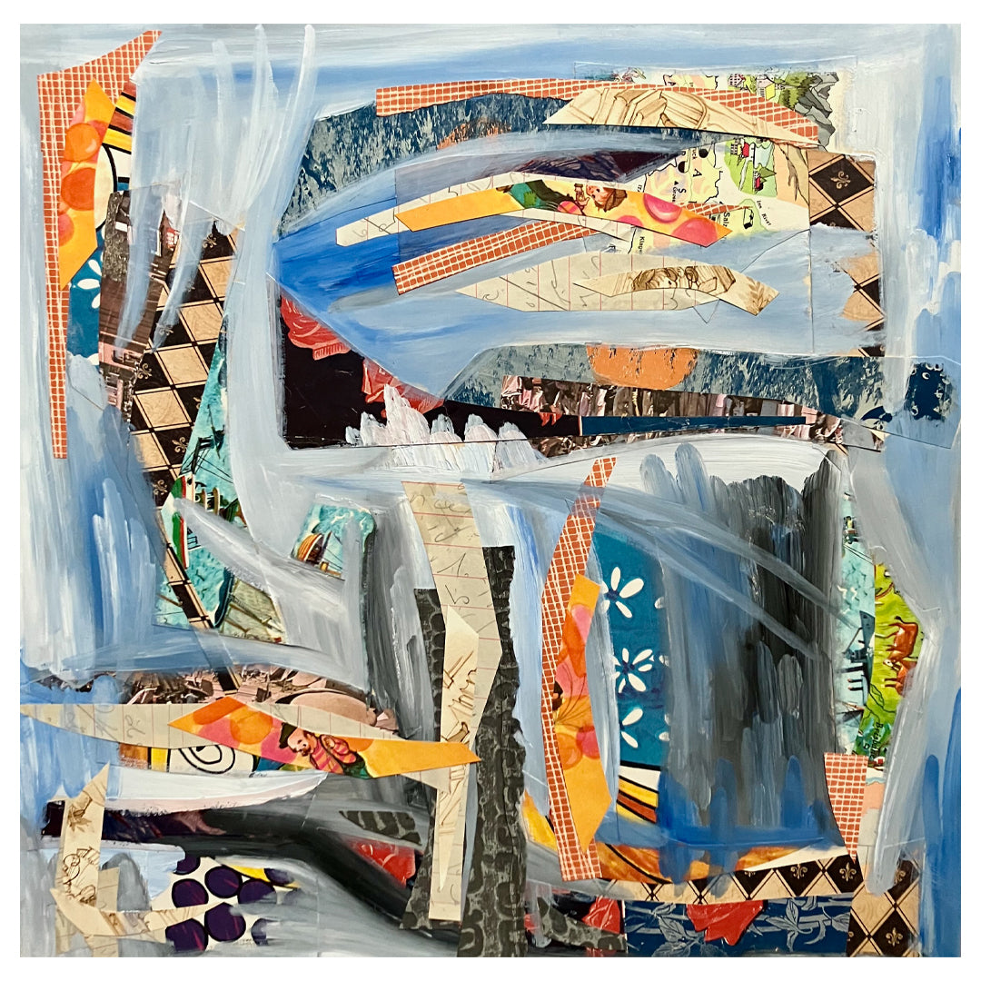 Wrinkle free adhesive, vintage papers, and oil paint on oak wood panel