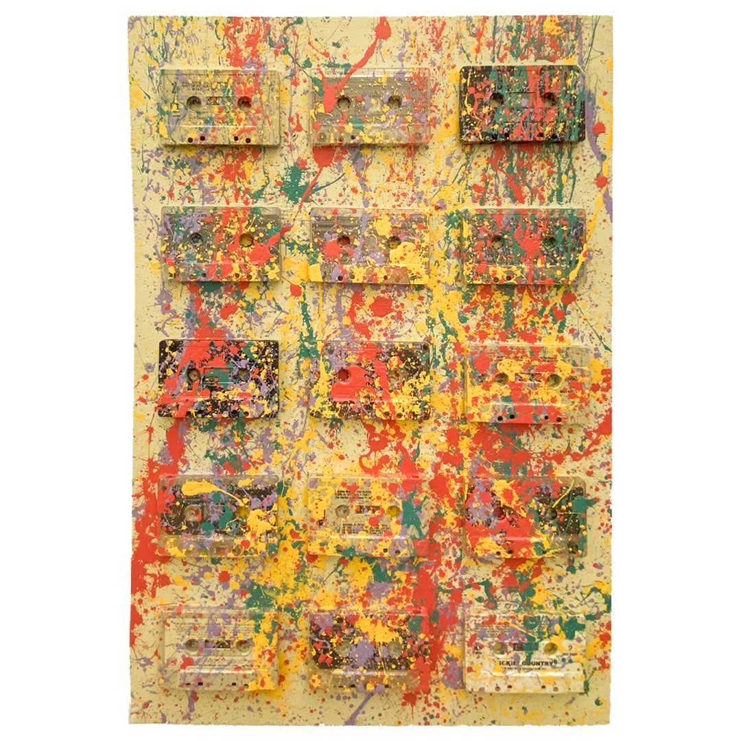 Flat paint and cassette tapes on sande plywood