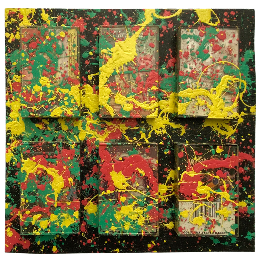 Flat paint and cassette tape cases on sande plywood