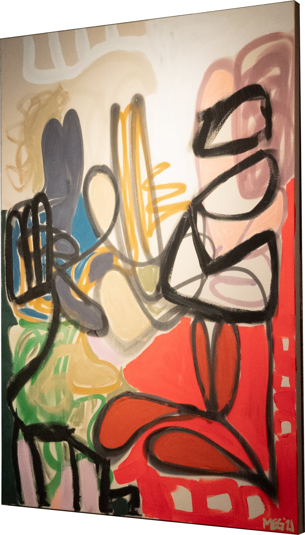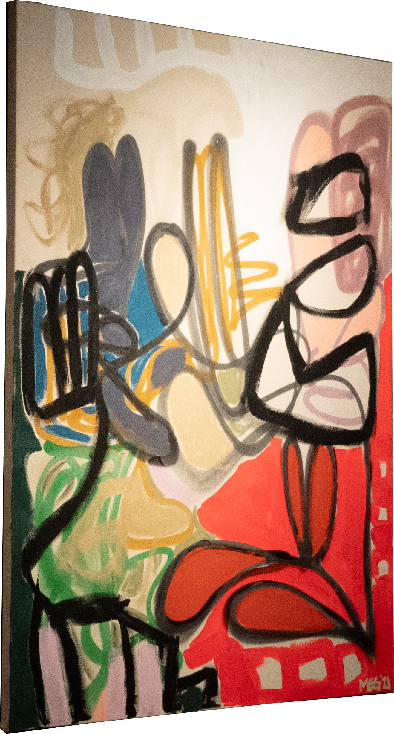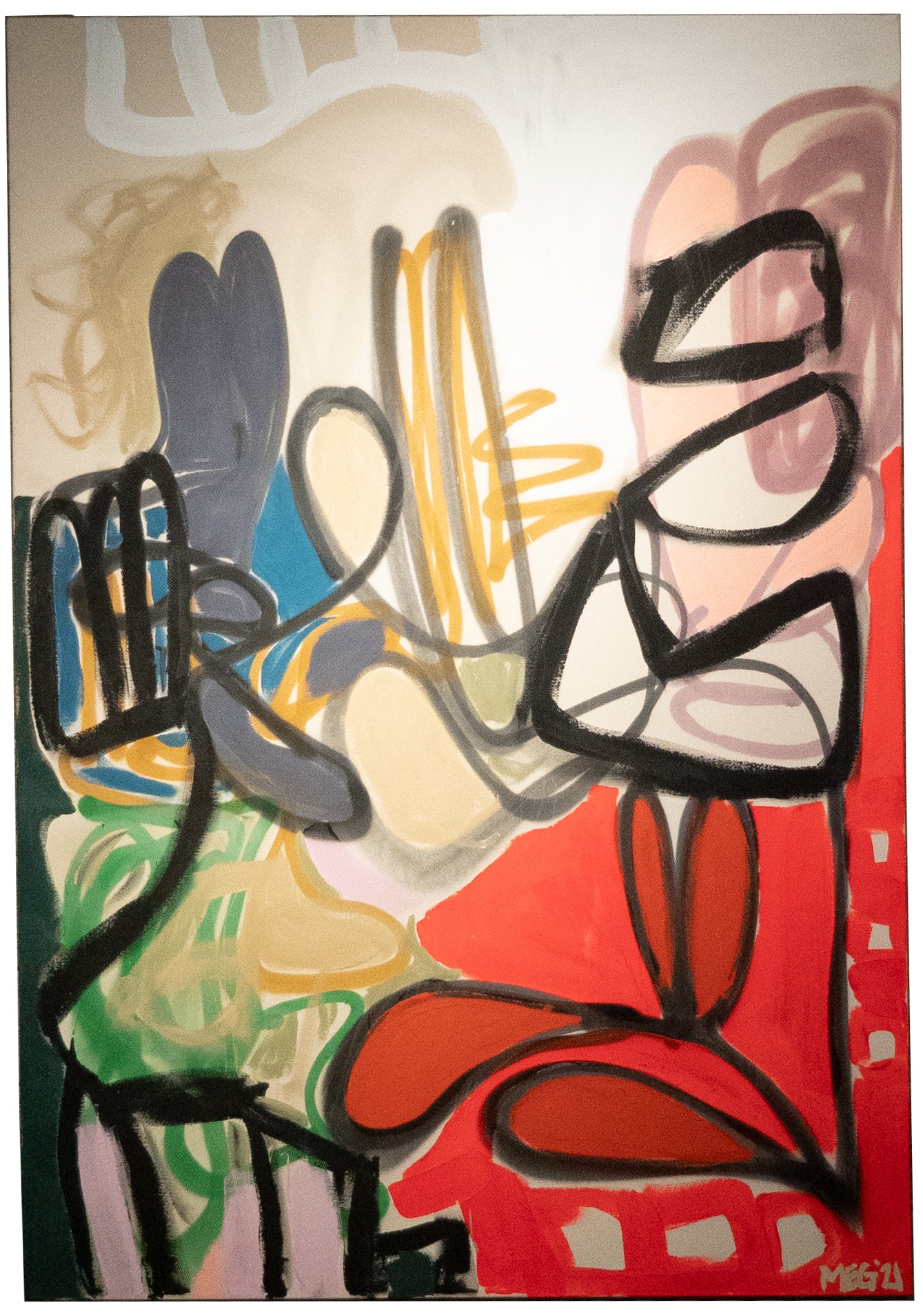 Spray paint, oil, and acrylic on canvas